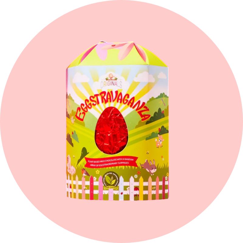 270g of plant based milk chocolate. This egg is one of biggest vegan Easter eggs on the market - no oversized packaging fluff, just pure indulgence and a surprise...