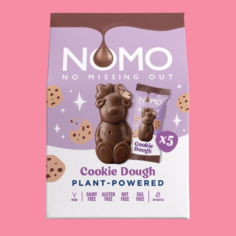 Celebrate the holidays with the NOMO Cookie Dough Mini Reindeers 5 Pack - perfect for sharing or enjoying as a solo treat. Each mini reindeer is filled with a delicious cookie dough centre, wrapped in Nomo's signature creamy plant based chocolate.
