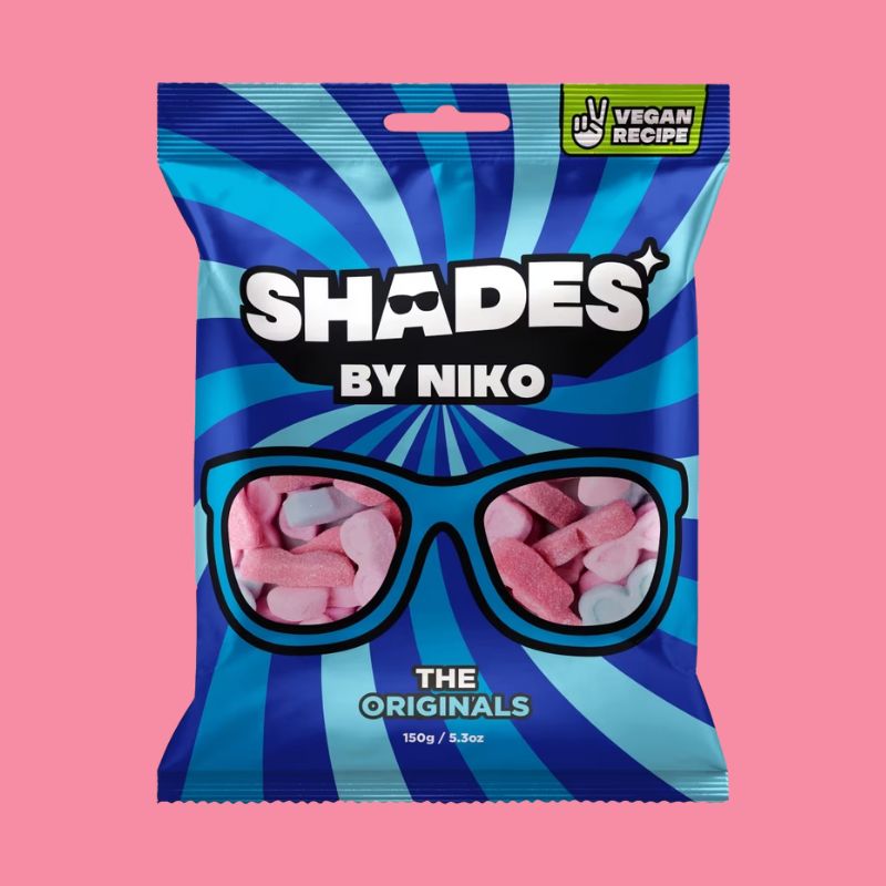 Shades By Niko The Originals are bold, vibrant jelly sweets that pack a punch in both flavour and shelf appeal. Bursting with fruitiness and featuring a unique sunglasses shaped design